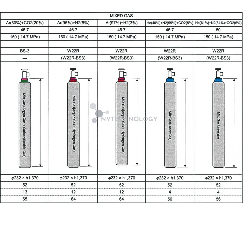 Qui cách sản phẩm – Specifications : Được trộn theo tỷ lệ các loại khí theo yêu cầu của khách hàng